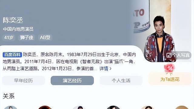 陈奕丞,原名陈月末,陈宝国儿子,这位也是典型星二代。1983年出生,爸妈都是演员,从小耳濡目染。14岁去英国留学,学机械,毕业后干了会儿本行。2011年回国进圈,第一部《智者无敌》里头演小角色猫爪,跟爸合作。之后资源不断,和爸拍了10部戏,演员阵容里有老戏骨,可他演技总让人摇头。2019年《老中医》里演小铃医,本该讨喜,结果只会瞪眼,观众吐槽不停。2022年《山河月明》演建文帝,得知亲人死讯时眼睛瞪得突兀,败仗场景特写眼睛,网友说吓人,演得过度。