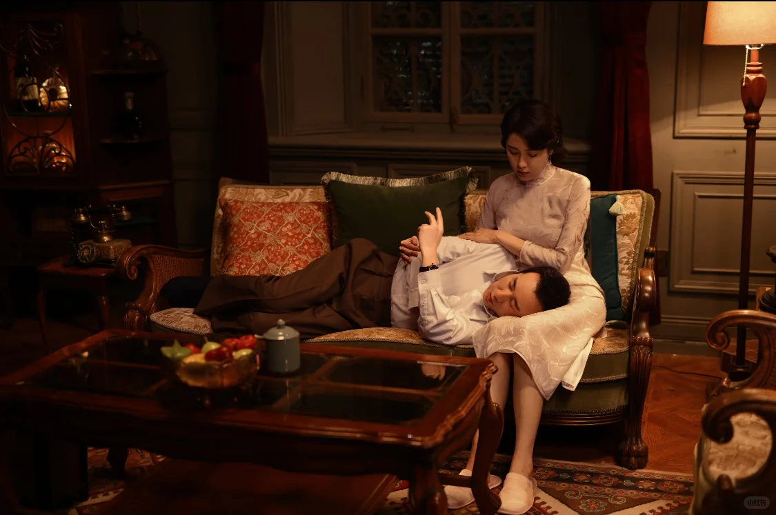 并且,曾黎还演出了民国时期大家闺秀的温婉,身穿旗袍披着披肩在阳台看书的时候,有种温柔静谧的感觉,看起来非常的放松、舒心。